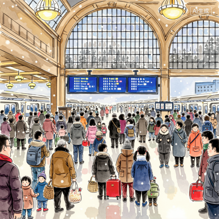 多少年来,每到农历年关,在外工作的人便开始盘算:哪天动身?带些什么?怎么回?该买的早早买好,该抢票的及时动手,该用车的提前维护。进入腊月后半月,习惯性的第一波拥挤便开始了。商场、集市上年货堆积如山,车站、码头、机场到处是拖着行李、面带期盼的身影。人潮涌动,有时甚至水泄不通。私家车普及后,就连高速公路也常常出现一眼望不到头的拥堵长龙,车灯连成一片,宛如一条缓慢流动的光河。